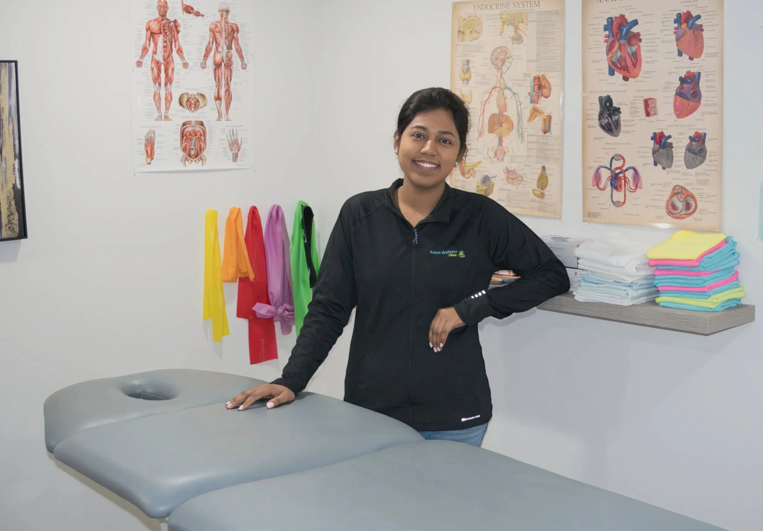 Lady brings a strong educational foundation to her practice at Aston Wellness. She holds a Bachelor of Physiotherapy degree (BPT) from Dr. MGR Medical University in India, which gave her a solid understanding of how the body works and heals.